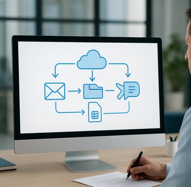Um lead entra no CRM e o Power Automate envia automaticamente um e-mail de boas-vindas, cria uma tarefa no Teams e alerta o responsável pela venda. O processo é instantâneo, padronizado e sem intervenção manual.